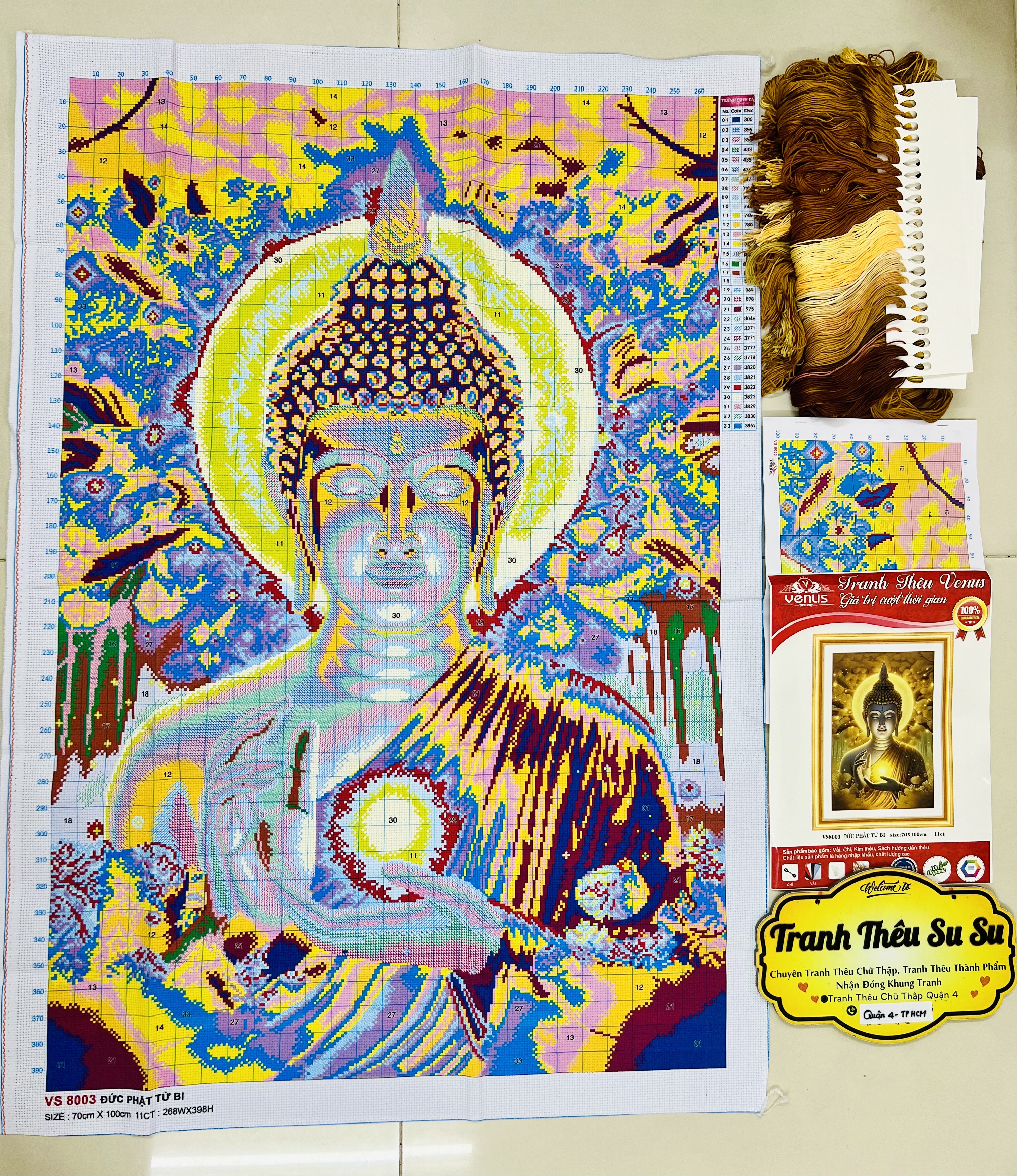 Tên tranh: Tranh thêu chữ thập Đức Phật vs8303 Sản phẩm là tranh của hãng venus Thể loại: Tranh thêu chữ thập - sản phẩm này tranh chưa thêu Kích thước: 60 x 95 c
