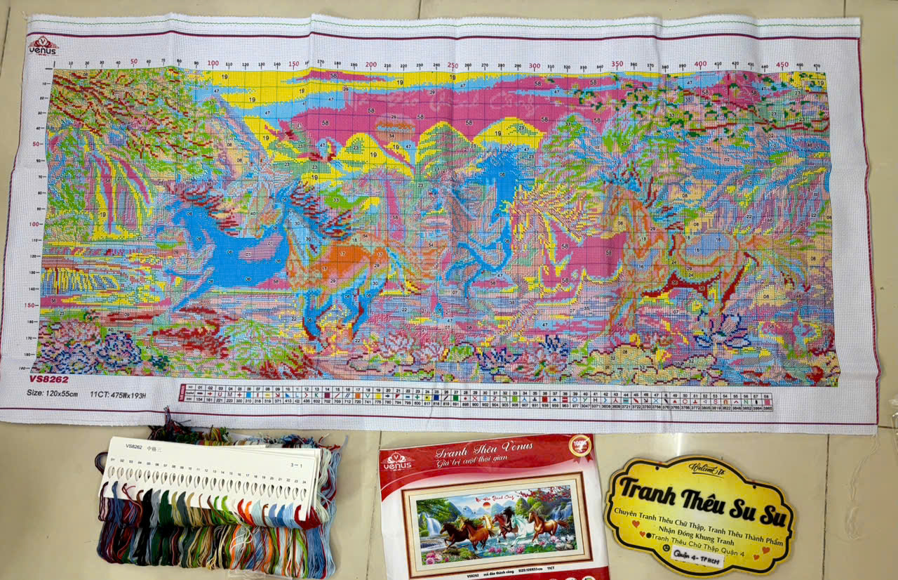 Sản phẩm này là tranh của hãng Venus phôi đẹp, vải dày, chỉ tốt. Vị trí khách cần thêu trên tranh: thêu kín bức tranh Kích thước: (150 x 60 cm) Sản phẩm tranh thêu