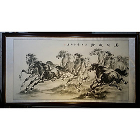 Mua tại TiktokChất liệu tranh bát mã-Mã đáo truy phong- mã đáo thành công-bát mã thảo nguyên,vẽ mực tàu trên giấy xuyến bồi viền vải gấm,