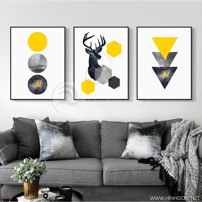 Tranh treo tường trang trí hươu nghệ thuật - Kích thước của tranh : Size 1 :50x70cmx 1 tấm +30x50x2 tấm Size 2 :60x80cm x 1 tấm +40x60x2 tấm - Chất liệu : Tráng gương