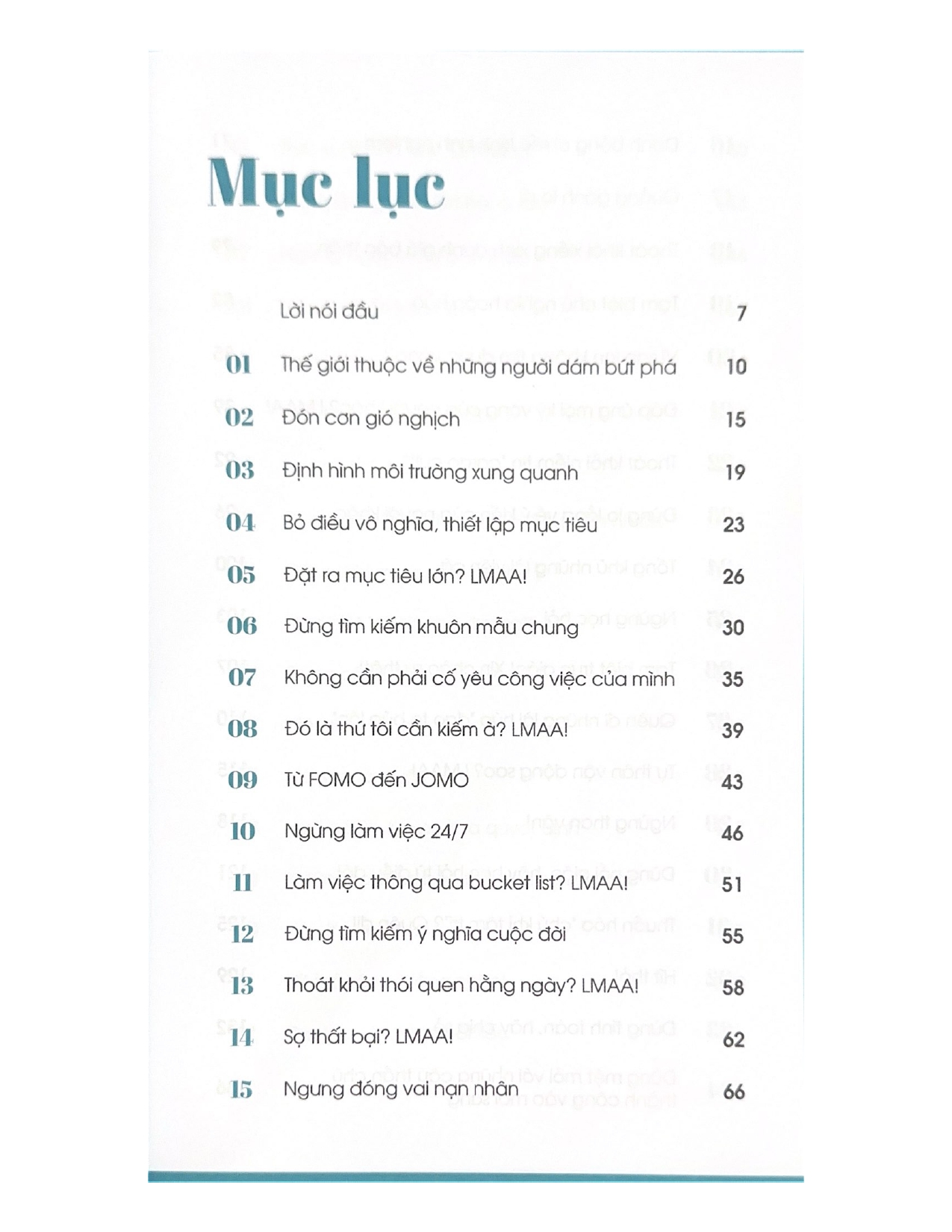 Để thoát khỏi vòng quay khổ sở này, ta phải học cách trở nên tốt đẹp hơn bằng cách thực hành Triết lý LMAA – “Cảm ơn, nhưng không phải hôm nay”. Hãy nói “LMAA” đối với những tham vọng thái quá khiến chúng ta mất động lực. Hãy nói “LMAA” đối với những đòi hỏi của người khác khiến ta phải sống một cuộc đời không đích thực. Hãy nói “LMAA” đối với những người đang ra sức dạy bảo ta “phải” sống như thế nào. Hãy nói “LMAA” đối với sự thôi thúc khiến ta luôn phải cố gắng sống tốt hơn và nhanh hơn. Hãy nói “LMAA” đối với cảm giác trách nhiệm và bổn phận đang đè nặng lên ta hằng ngày