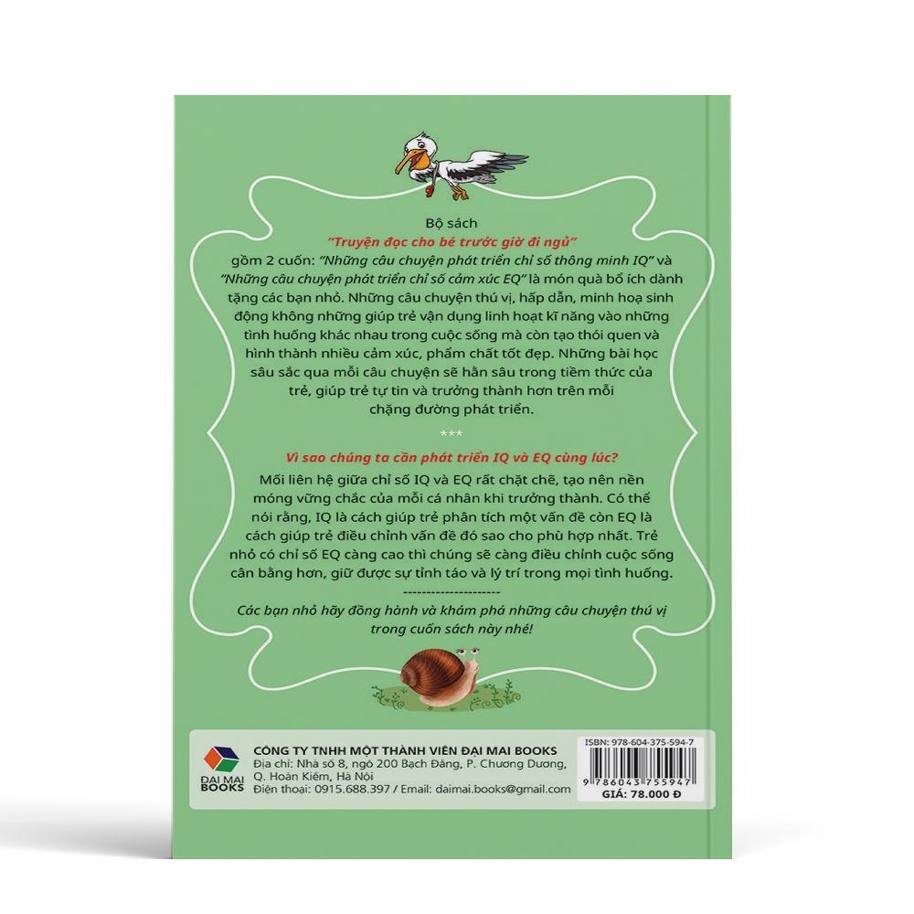 "Truyện đọc cho bé trước giờ đi ngủ - Những câu chuyện phát triển chỉ số cảm xúc EQ" là món quà tinh thần bổ ích cho bé trên đường đường đời phát triển toàn diện về mặt trí tuệ và cảm xúc.
