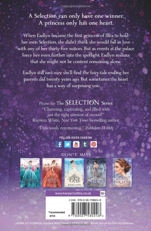 Eadlyn didn't think she would find a real partner among the Selection's thirty-five suitors, let alone true love. But sometimes the heart has a way of surprising and now Eadlyn must make a choice that feels more difficult - and more important - than she ever expected