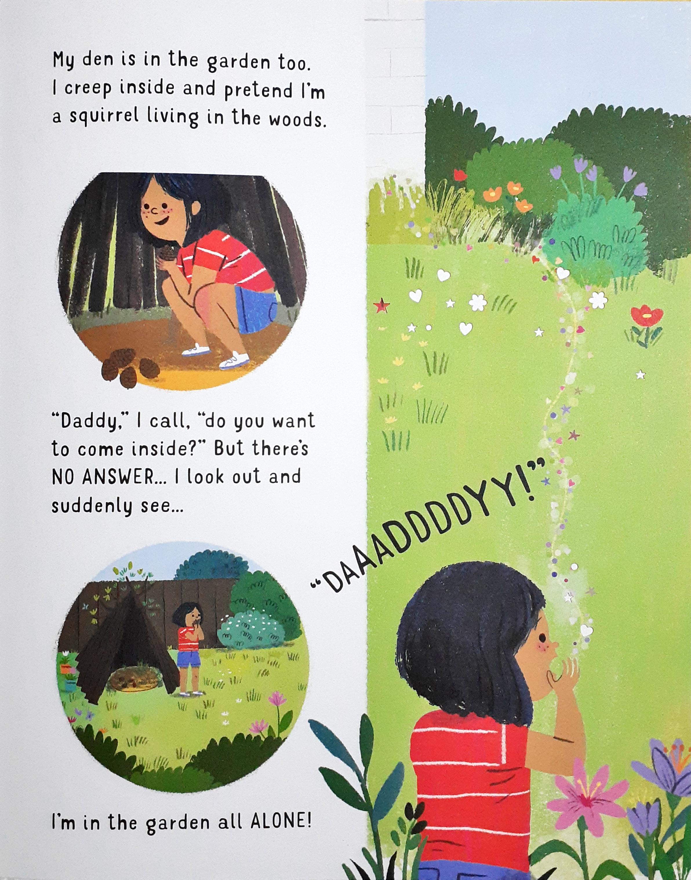 The fear of being alone is common to many young children. Sweetly told from the little girl's perspective, this story explores that worry in a gentle, humorous way, coming to a comforting conclusion that might help allay any similar fears a reader may have. Beautiful laser-cut doorways and threads of connection as she calls to her father or he sings to her from different rooms illustrate her feelings throughout the book. The little girl and her family are brought warmly to life in the gorgeous, characterful artwork.