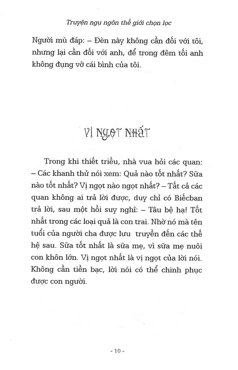 Truyện ngụ ngôn là truyện kể có tính chất thế sự, dùng cách ẩn dụ để thuyết minh cho một chủ đề luân lý, triết lý một quan niệm nhân sinh hay một nhận xét về thực tế xã hội. Mỗi câu chuyện ngụ ngôn mang đến cho không chỉ trẻ em mà còn cả người lớn những bài học quý giá.