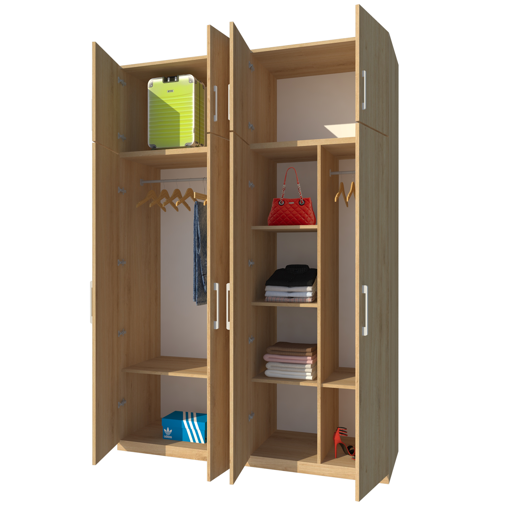 • Tủ chia thành 3 ngăn đứng và 4 cánh cửa giúp việc mở đóng nhẹ nhàng