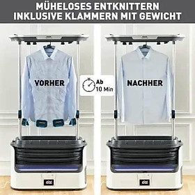 ĐÁNH BAY MỌI VẾT NHĂN NHÀU : Chỉ cần treo tối đa 3 chiếc quần áo để có kết quả mịn màng trong vòng chưa đầy 10 phút, hoặc tăng thời gian lên 30 phút để loại bỏ ngay cả những nếp nhăn cứng đầu nhất