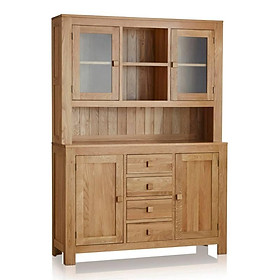Tủ chén cao Oakdale lớn là tập hợp sự sáng tạo về kiểu cách và chức năng, tạo nên một mảnh ghép hoàn thiện về không gian nội thất cho phòng ăn của gia đình. Sản phẩm được chế tác thủ công từ các thợ mộc lành nghề. Sản phẩm mang đặc trưng bởi kết cấu ghép mộng truyền thống chính xác, với tay cầm gỗ vuông đơn giản và thanh lịch của bộ sưu tập Oakdale. Thiết kế với 4 ngăn tủ rộng rãi giúp việc lưu trữ các đồ dùng trong bếp trở nên gọn gàng và tiện dụng. Trong đó với 2 ngăn tủ kính và 2 ngăn kệ mở hỗ trợ việc trưng bày các đồ dùng trang trí, tô điểm cho phòng ăn thêm phần ấn tượng. Ngoài ra, với 4 ngăn kéo chắc chắn đáp ứng một lượng lưu trữ ẩn tuyệt vời; riêng mặt kệ giữa sẽ là nơi bày biện các món ăn hàng ngày rất tiện lợi. Toàn bộ bề mặt tủ được sơn PU cao cấp, vừa giúp bảo vệ lớp gỗ bên trong mà vẫn giữ nguyên được vẻ đẹp tự nhiên của gỗ sồi trắng Mỹ nhập khẩu.