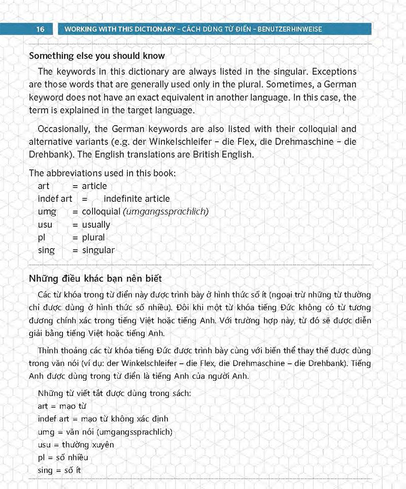 • Thuận tiện: Từ điển trình bày bằng ba ngôn ngữ: Anh-Việt-Đức