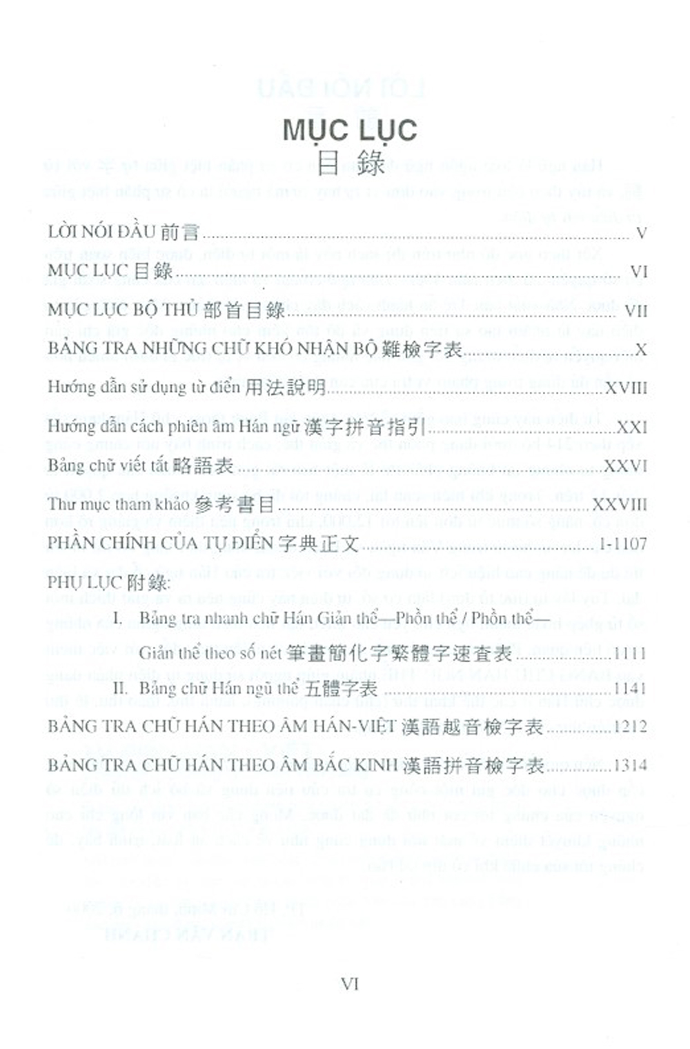 Có hai phụ lục: Bảng tra nhanh chữ Hán giản thể - phồn thể / phồn thể - giản thể và bảng tra chữ Hán ngũ thể.