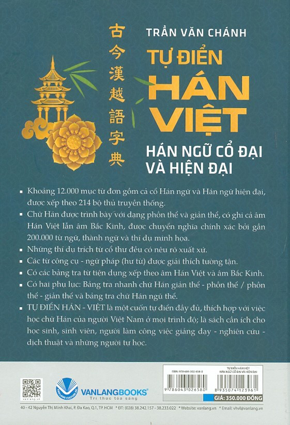 TỰ ĐIỂN HÁN - VIỆT là một cuốn tự điển đầy đủ, thích hợp với việc học chữ Hán của người Việt Nam ở mọi trình độ; là sách cần ích cho học sinh, sinh viên, người làm công việc giảng dạy - nghiên cứu - dịch thuật và những người tự học.