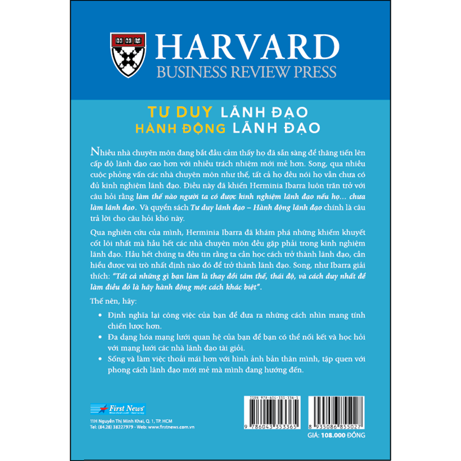 Mua tại TiktokTư Duy Lãnh Đạo - Hành Động Lãnh Đạo Nhiều nhà chuyên môn đang bắt đầu cảm thấy họ đã sẵn sàng để bắt đầu thăng tiến lên cấp độ lãnh đạo cao hơn với nhiều trách nhiệm mới mẻ hơn. Song qua nhiều cuộc phỏng vấn các nhà chuyên môn như thế, họ đều nói vẫn chưa có đủ kinh nghiệm lãnh đạo. Điều này khiến Herminia Ibarra luôn trăn trở với câu hỏi rằng làm thế nào để người ta có được kinh nghiệm lãnh đạ nếu họ chưa làm lãnh đạo. Và cuốn sách Tư Duy Lãnh Đạo - Hành Động Lãnh Đạo chính là câu trả lời cho câu hỏi này. "Tất cả những gì bạn làm là thay đổi tâm thế, thái độ, và cách duy nhất để làm điều đó là hãy hành động một cách khác biệt." Thế nên, hãy: