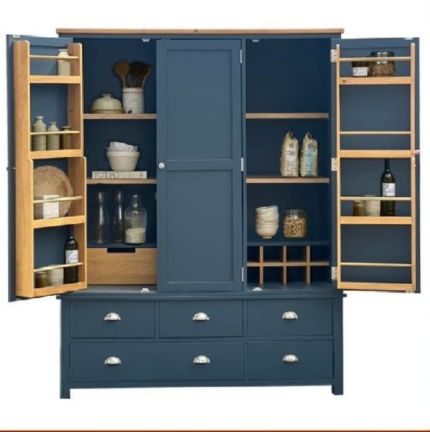 ✨Tủ gỗ đựng thực phẩm chuyên dụng Tundo ngang 140 x 55 x 198 cm màu xanh