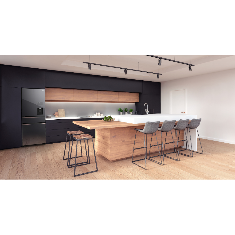 • Tủ lạnh cao cấp âm toàn phần dạng Multi Door (4 cánh mở trên) • Thiết kế âm tủ với cửa có thể lắp mặt gỗ phía trước theo ý thích và thiết kế