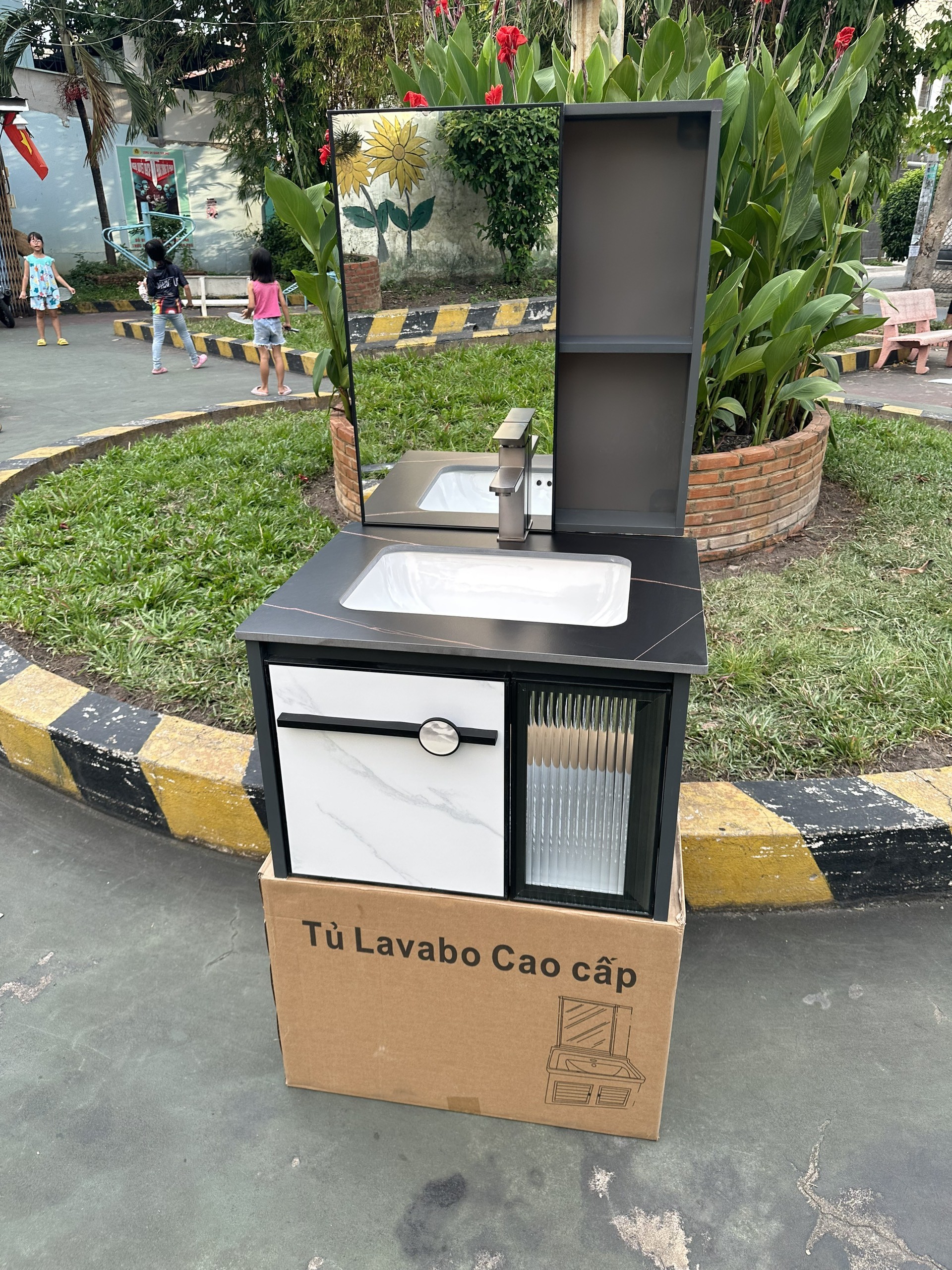 - Chất liệu: Thân nhôm mặt đá chống trầy, lavabo làm bằng sứ phủ nano chống bám bẩn dễ vệ sinh.