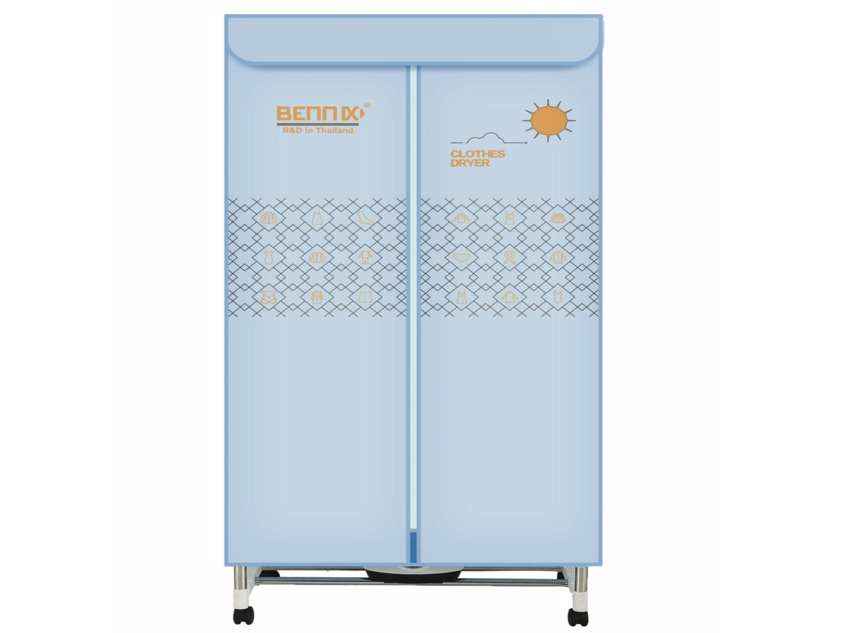 Tủ Sấy Quần Áo Bennix BN-115BIG -1800W Vài năm gần đây tủ sấy quần áo Thái Lan thương hiệu Bennix được nhiều gia đình lựa chọn. Sản phẩm có khung chắc chắn, vải bạt tốt, động cơ sấy an toàn, vải bạt bên ngoài không bị vỡ giòn hay rách mủn sau một thời gian sử dụng như loại rẻ tiền đang bán trên thị trường. Mặc dù giá cao hơn một chút so với máy sấy quần áo giá rẻ nhưng lợi ích mang lại lâu dài và yên tâm sử dụng. Khung Inox to Điểm khác biệt lớn nhất của tủ sấy quần áo Thái Lan Bennix BN-115BIG mẫu mới là khung inox cao hơn. Chiều cao sau lắp đặt khoảng 172cm, trong khi các loại đang bán trên thị trường khoảng 150cm. Chiều rộng của tủ 90cm (loại cũ chỉ 70cm). Nhờ đó bạn treo được nhiều đồ hơn. Với các mẫu máy sấy quần áo hiện nay thường sấy khoảng 15kg nhưng Bennix BN-115BIG có thể sấy tối đa 25kg. Các thanh inox cũng to hơn, khi lắp đặt bạn sẽ có cảm giác chắc chắn hơn rất nhiều so với các loại. Khả năng chịu lực tốt. Chất liệu inox không gỉ. Ngoài các thanh chính còn có thêm các thanh phụ nhỏ giúp tăng khả năng tận dụng tối đa bên trong buồng sấy. Khả năng cơ động cao với bánh xe di chuyển. Thiết kế thông minh dễ dàng tháo lắp khi có nhu cầu hoặc không muốn sử dụng khi hết mua. Khung tủ chắc chắn bạn cũng có thể sử dụng thay cho tủ vải đựng quần áo. Vải cao cấp Vải bạt phủ bên ngoài thủ sấy cũng có sự khác biệt đáng kể. Thay vì sử dụng chất liệu pha nhiều, tủ sấy quần áo Bennix BN-115BIG sử dụng loại vải cao cấp. Nhờ đó độ bền tăng lên rấ nhiều. Sản phẩm không bị mục, rách, thoái hóa sau một thời gian sử dụng. Công suất lớn Động cơ của tủ sấy quần áo Bennix BN-115BIG cũng có sự khác biệt rất lớn. Công suất lớn, chất liệu nhự cao cấp và bộ phát nhiệt ổn định giúp duy trì nhiệt độ bên trong buồng sấy tối ưu. Máy sẽ tự động ngắt sau khi hết thời gian để đảm bảo an toàn. Sấy khô nhanh, bảo vệ quần áo Công suất của động cơ tối đa 1800w, nhờ đó máy có thể sấy lượng lớn quần áo nhanh chóng. Thời gian sấy có thể lựa chọn tối đa 3 giờ. Tùy theo lượng quần áo, chấ liệu vải dầy hay mọng bạn có thể chọn lựa thời gian phù hợp. Hệ thống sấy khô kết hợp diệt sạch vi khuẩn và chống nhăn giúp bảo vệ quần áo. Hướng dẫn sử dụng tủ sấy Bennix BN-115BIG Trước tiên bạn cần lắp ráp tủ sấy trước khi sử dụng. Tham khảo qua sách hướng dẫn lắp đặt
