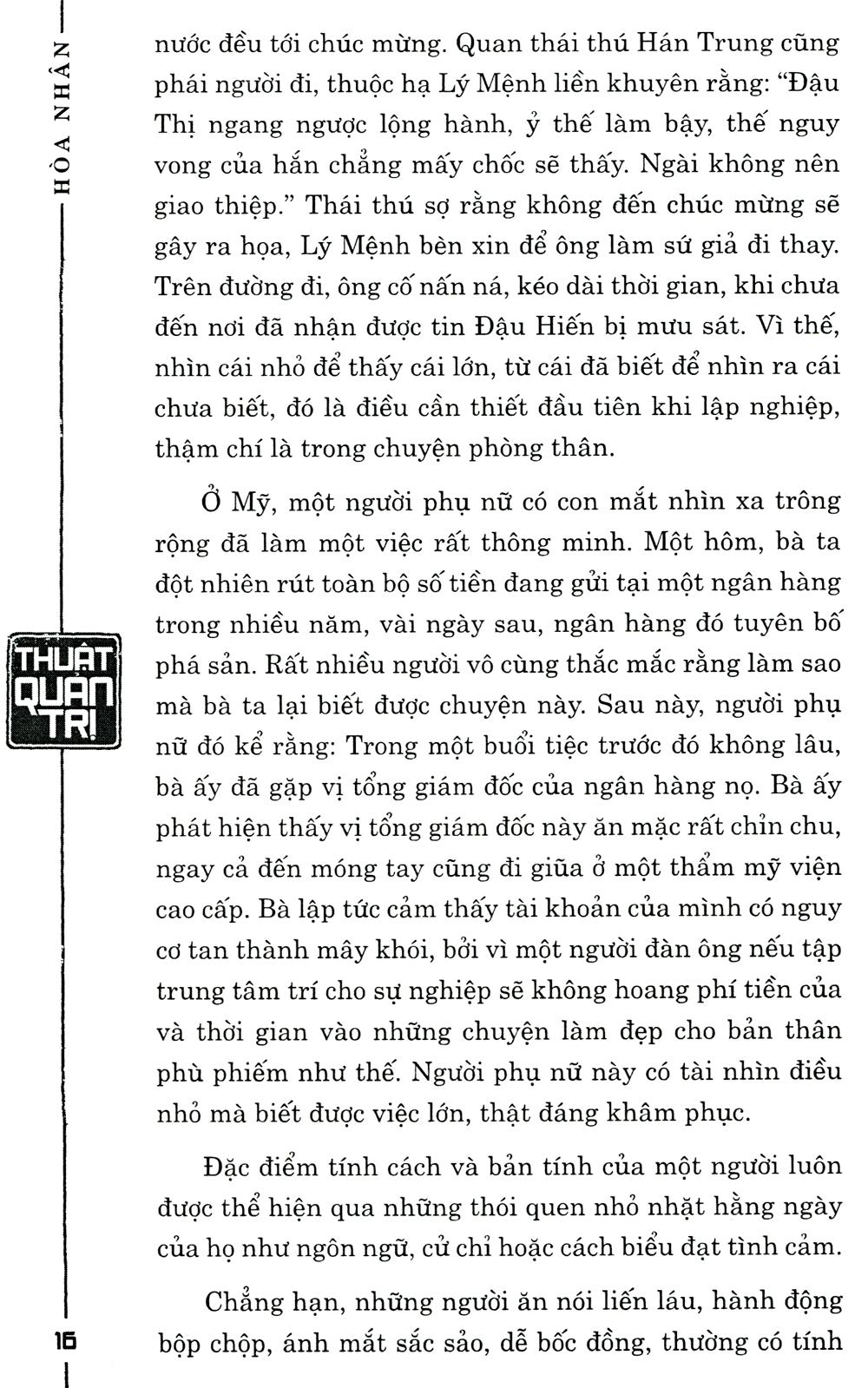 Nội dung của “Thuật quản trị” sẽ giúp bạn có con mắt tinh đời để biết cách nhìn người. Vậy làm thế nào để có thể nhận biết người tốt kẻ xấu? Điều kiện tiên quyết nằm ở việc bạn phải công bằng, chính trực, vô tư, không thiên vị…