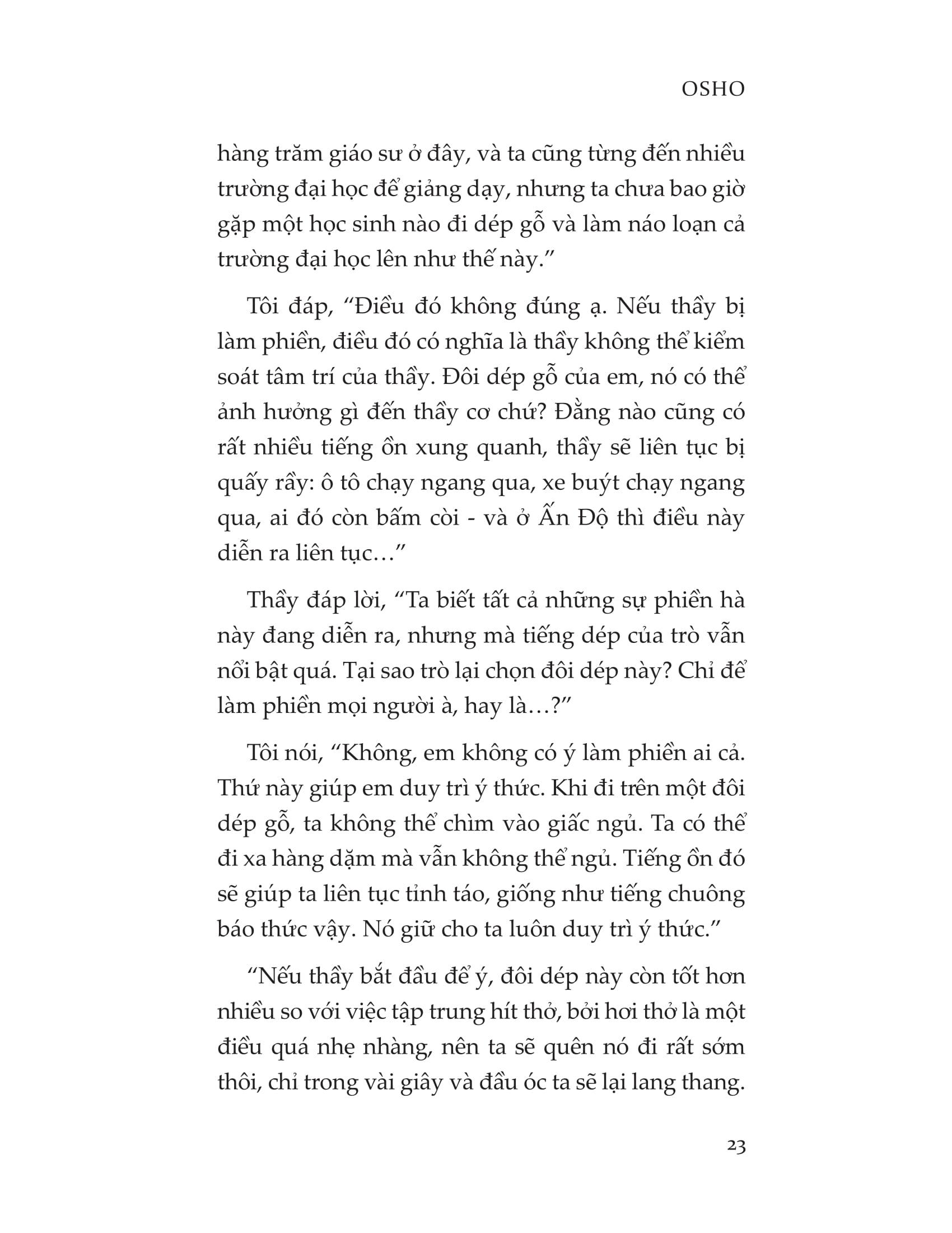 Osho (1931-1990) là một đạo sư người Ấn được hàng triệu người trên thế giới tìm đọc. Hàng trăm cuốn sách cùng vô số bài thuyết giảng của ông về đề tài tâm linh đã để lại những dấu ấn khó phai trong lòng công chúng. Giáo lý của Osho đậm chất phương Đông, nhấn mạnh tới tầm quan trọng của thiền và sự tỉnh thức, từ đó hướng người tu tập buông bỏ cái tôi, nuôi dưỡng tình thương yêu và đánh thức nguồn năng lượng nguyên thủy từ trong căn cốt.