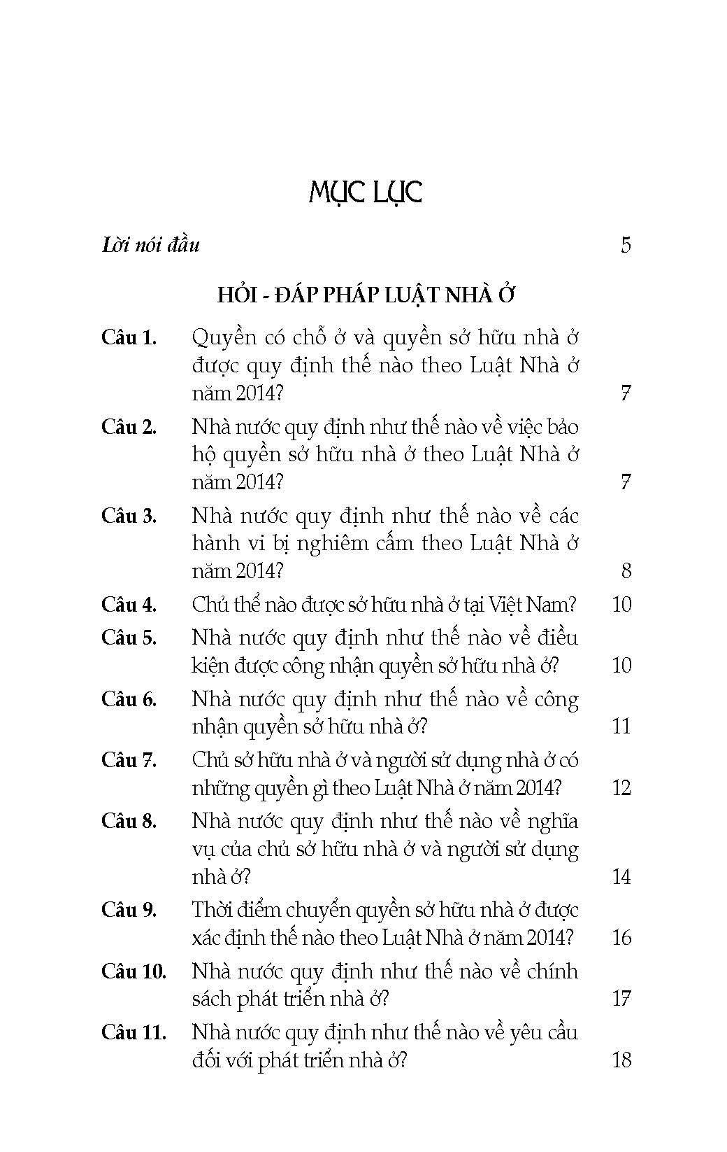 Nhu cầu tìm hiểu các vấn đề pháp lý về đất đai, nhà ở là nhu cầu chung của mọi người dân trong xã hội. Với phương châm để bạn đọc có thể tiếp cận các kiến thức pháp luật một cách đơn giản, dễ hiểu nhất, nội dung cuốn sách được biên soạn dưới dạng hỏi - đáp về các vấn đề pháp lý liên quan đến đất đai và nhà ở.