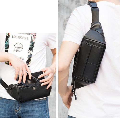 Túi bao tử da bò BHM7315 Đeo ngực, đeo bụng đeo vai... thoải mái, tiện dụng