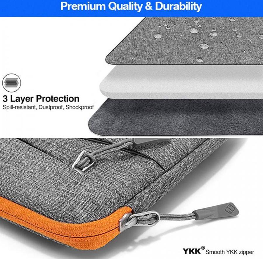 • Sử dụng chất liệu chống va đập bên ngoài bằng Polyester kháng nước với lớp lót lông cừu mềm giúp bảo vệ hoàn toàn chống va đập và trầy xước cho máy tính