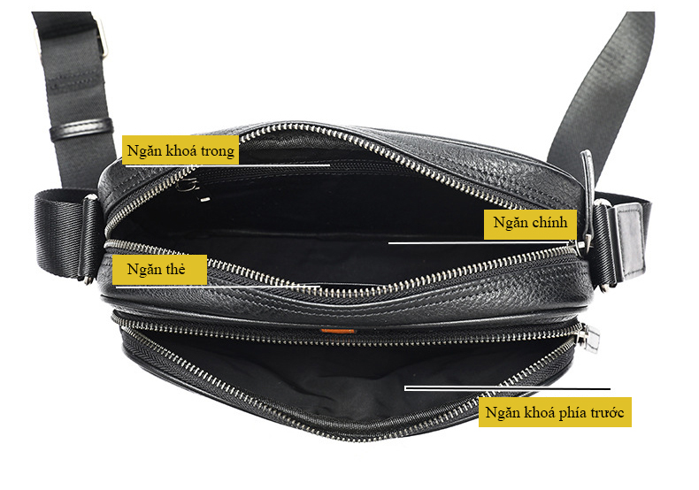 Nhiều ngăn tiện lợi: ngăn chính rộng rãi, nhiều ngăn phụ, khe cài thẻ card, ngăn khóa kéo, ngăn điện thoại, ví, hộ chiếu, sạc…
