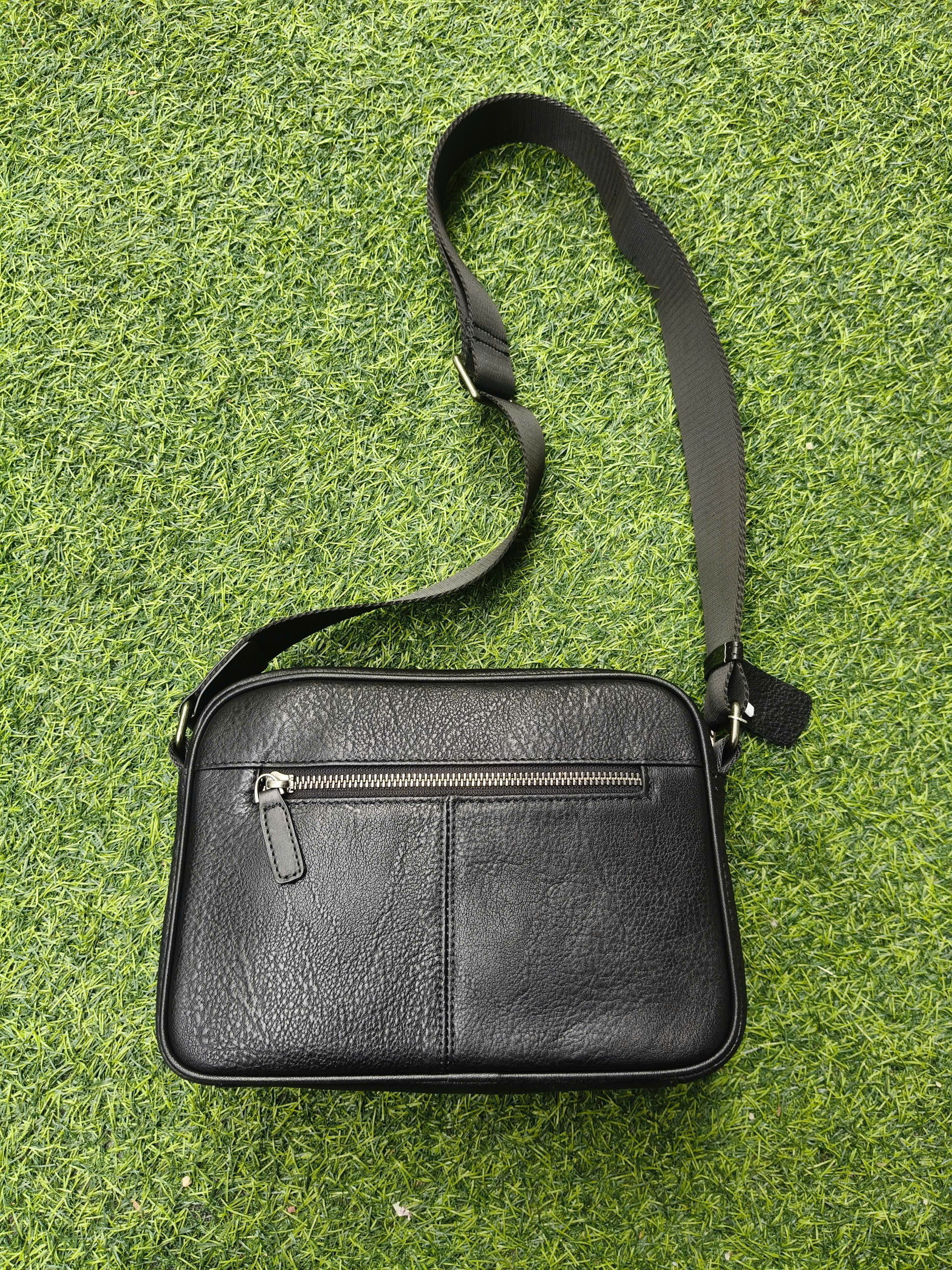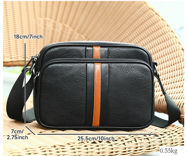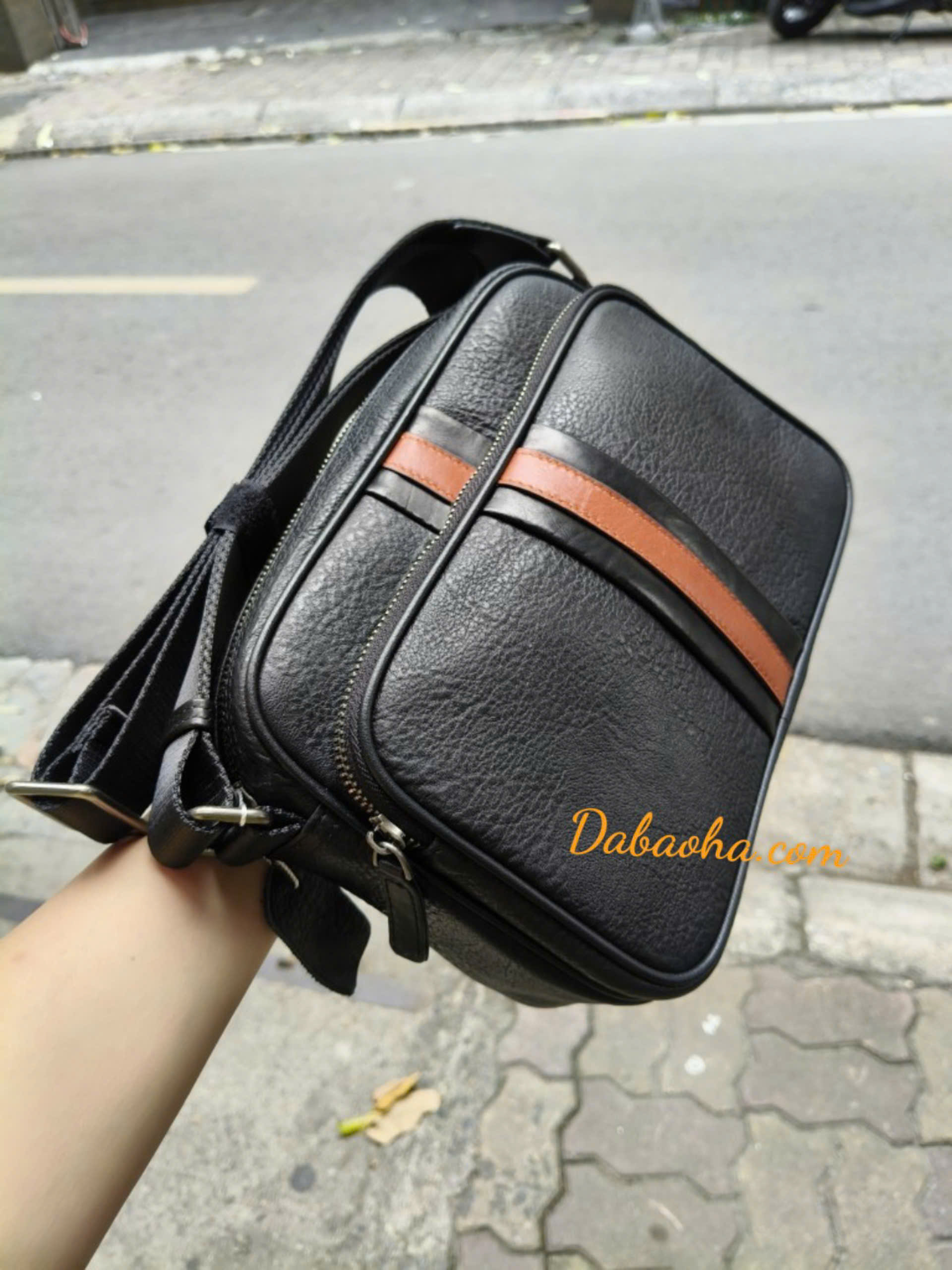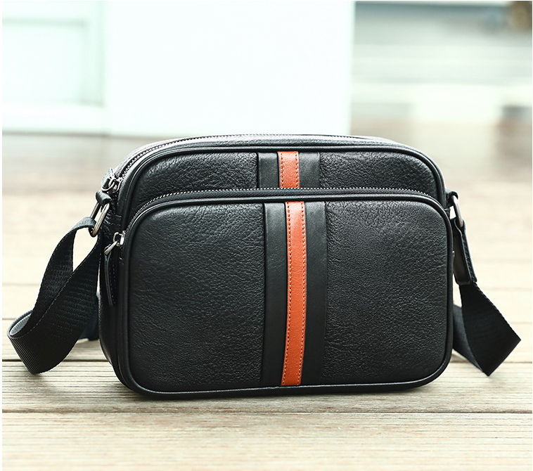 Thiết kế tinh tế, nhỏ gọn: phần da nâu giữa túi tạo điểm nhấn trẻ trung và nam tính, dễ phối đồ với mọi phong cách.