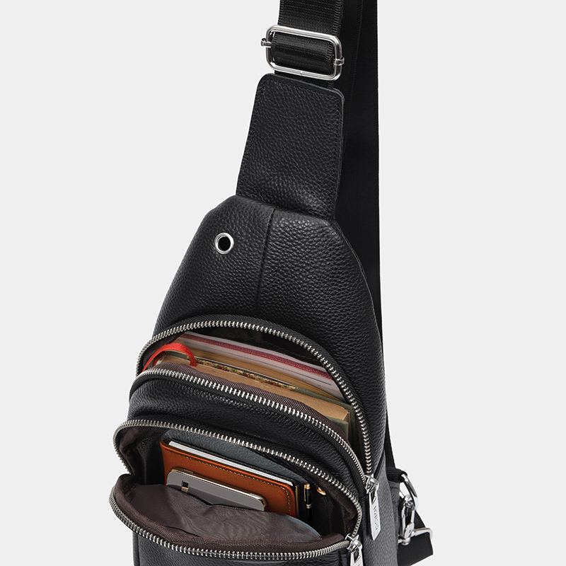 Túi đeo ngực, đeo chéo nam da bò cao cấp BHM9104 được thiết kế khá đơn giản kết hợp với màu đen trơn mang lại sự giản dị cũng không kém phần trẻ trung, năng