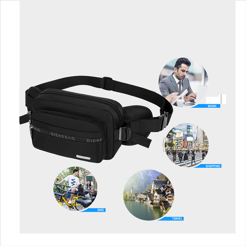 - Cấu tạo túi đeo bụng gồm có nhiều ngăn đựng đồ, tiện dụng cho bạn trong quá trình sử dụng, phân loại đồ dùng được dễ dàng hơn. - Mặt sau được làm bằng