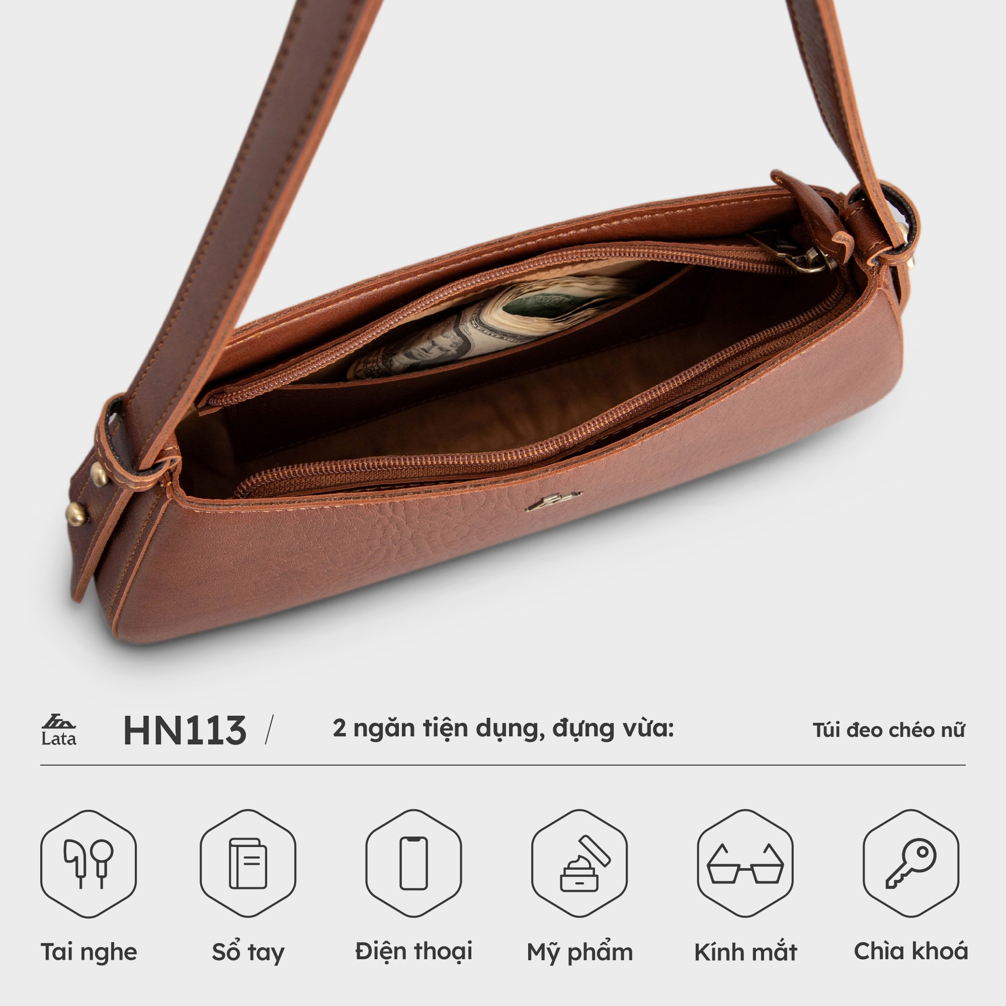 Túi đeo chéo da nữ Lata HN113 với thiết kế bo góc mang lại sự thời trang và trẻ trung cho phái đẹp. Ngăn bên trong rộng rãi để bạn có thể đựng được nhiều
