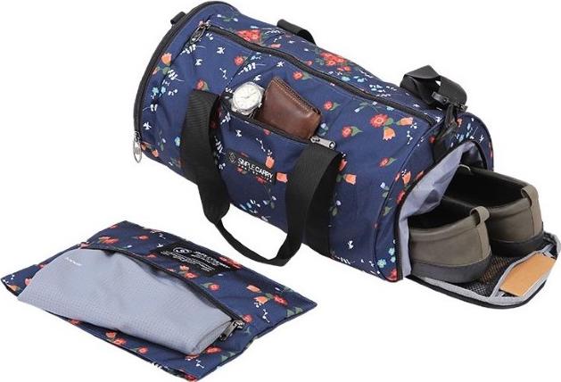 Túi gồm 1 ngăn chính lớn, 1 ngăn bên trái có ngăn đựng điện thoại, vật dụng nhỏ và 1 bên phải là ngăn đựng giày, hoặc áo mưa.