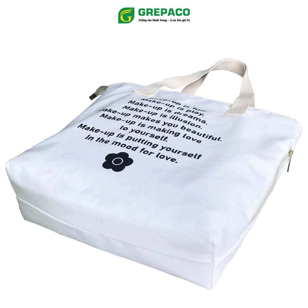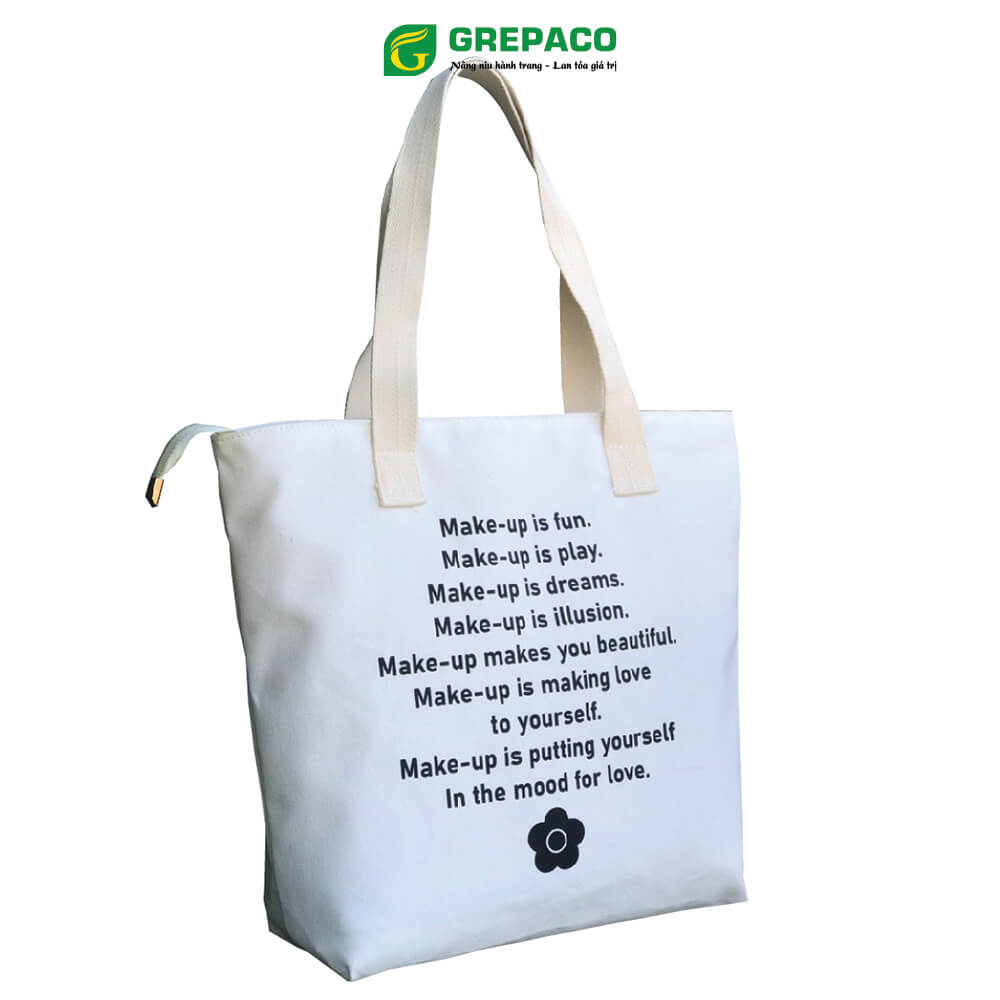 Túi Tote Nữ Grepaco Xách Vải Bố Canvas Cao Cấp In Chữ Đẹp Đeo Chéo Vai Có Khóa Kéo Nhiều Ngăn Dùng Đi Học, Làm Công Sở, Du Lịch Phong Cách Thời Trang Hàn Quốc - Tặng Túi Đựng Mỹ Phẩm. Mẫu túi vải nữ đẹp, cá tính được nhiều bạn trẻ yêu thích.
