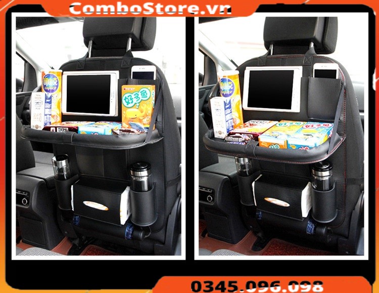 Túi da đựng đồ đa năng treo sau ghế Ô tô, Xe hơi – Tích hợp bàn ăn tiện lợi. Sản phẩm vừa là túi đựng đồ vừa có tác dụng mở ra thành chiếc