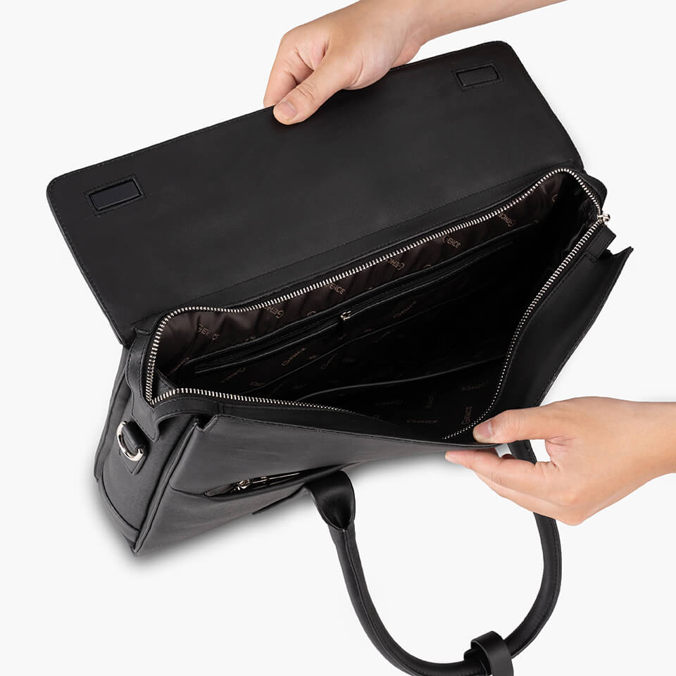Cặp da công sở TCA25 có ngăn chính lớn, đựng vừa tài liệu khổ A4, máy tính xách tay 13 inch. Bên cạnh đó, cặp có nhiều ngăn phụ để bạn sắp xếp đồ đạc