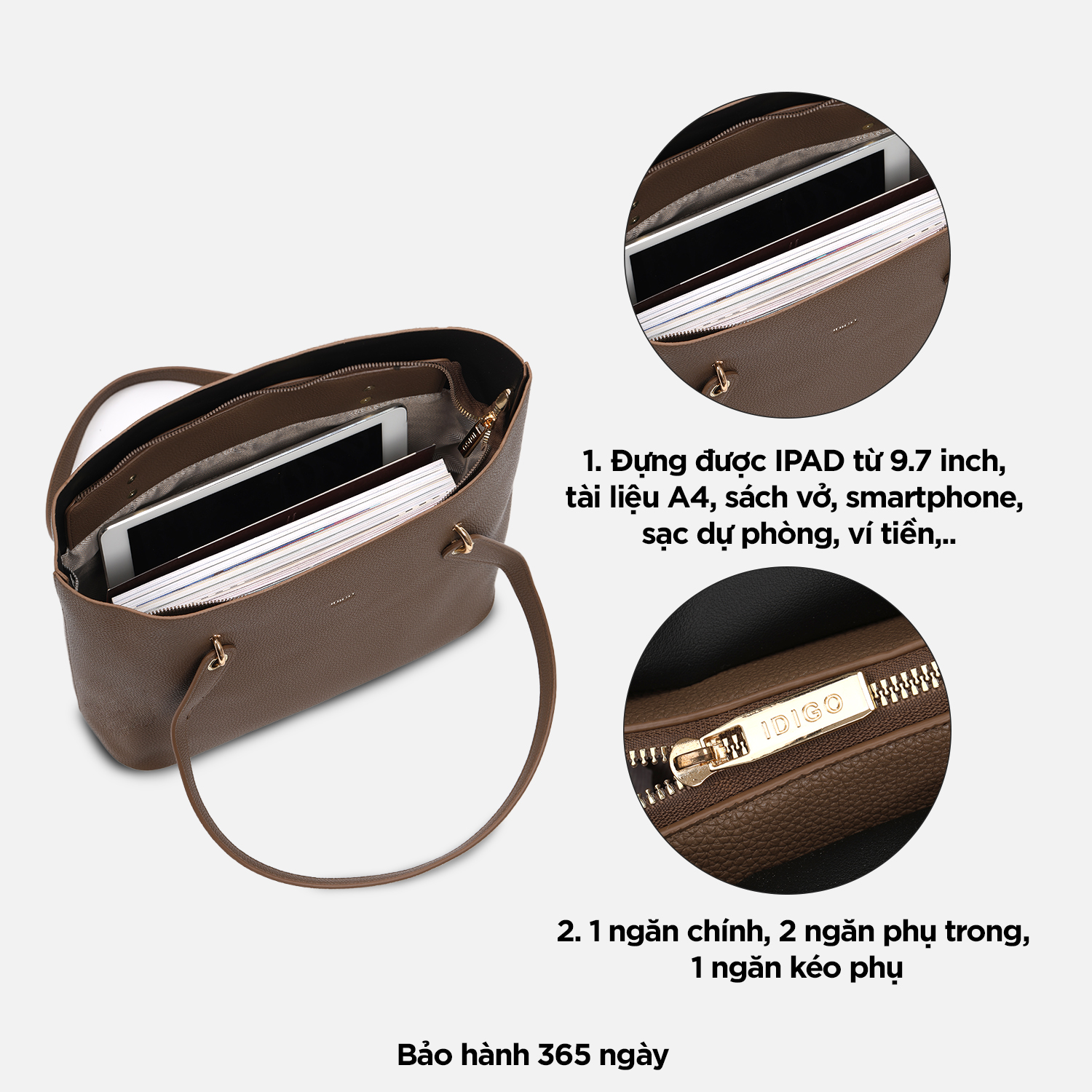 ✨Túi xách nữ đeo vai công sở IDIGO FB2 - 6026, túi đựng tài liệu phom lớn thanh lịch