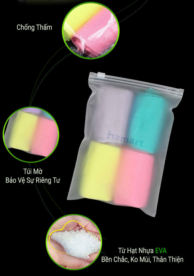 Túi Zip Đựng Quần Áo tiện dụng để lưu trữ, bảo quản quần áo, phụ kiện nhỏ, đặc biệt phù hợp khi đi du lịch với thiết kế khóa kéo ziplock tiện lợi. Ưu điểm đầu tiên của túi zipper có khóa kéo mà chúng ta cần nhắc tới đó chính là sự tiện lợi, dễ sử dụng. Để đóng túi, bạn chỉ cần cầm nút khóa kéo nhẹ là 2 đường khóa sẽ dính chặt vào nhau hoặc tách rời cực kỳ đơn giản, bất cứ ai cũng có thể sử dụng được. Được sản xuất từ hạt nhựa nguyên sinh EVA cao cấp, an toàn với sức khỏe người dùng.