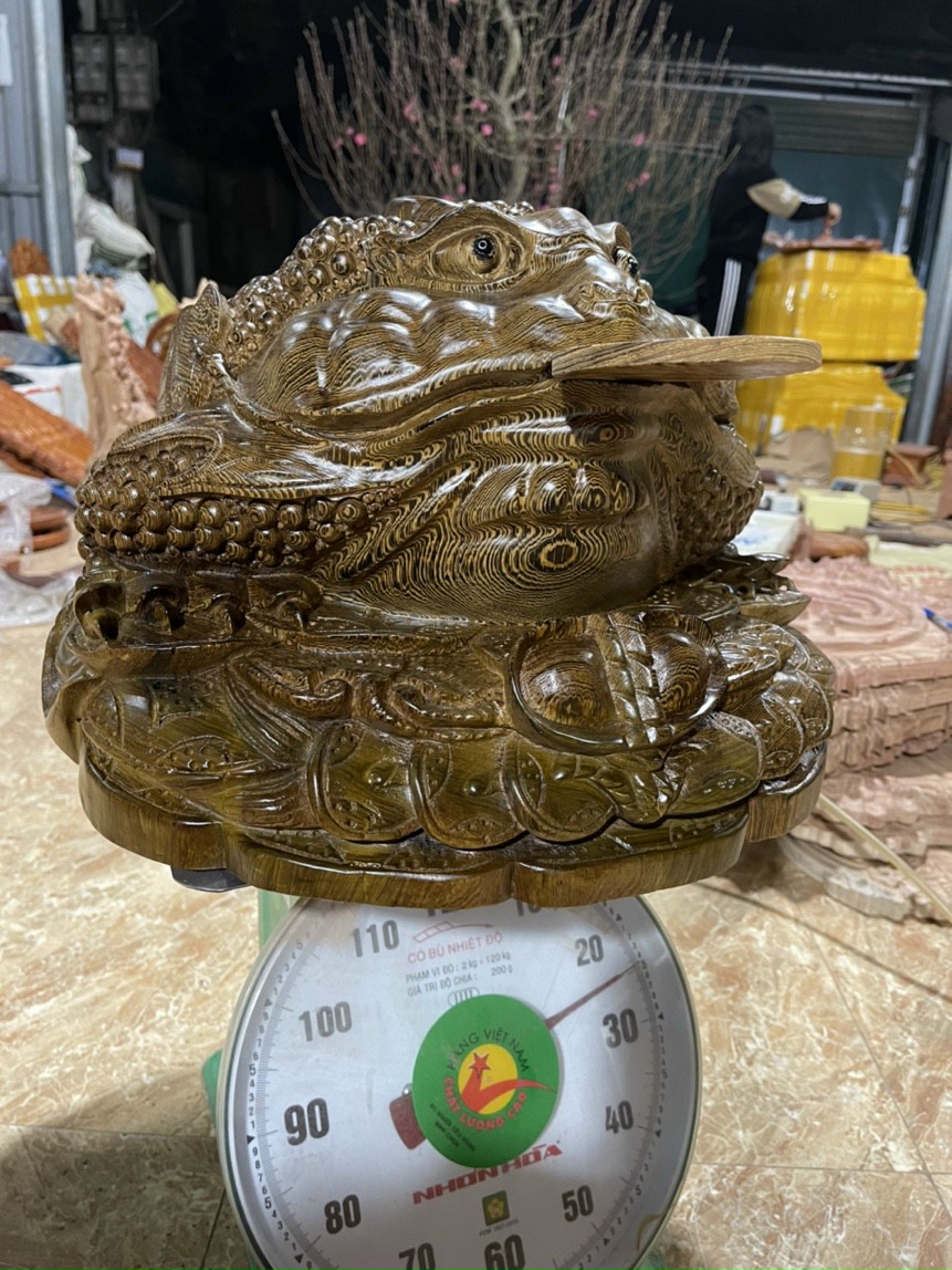 ✨Tượng con cóc phong thủy hút tài lộc bằng gỗ mun đuôi công kt 47×47×40cm