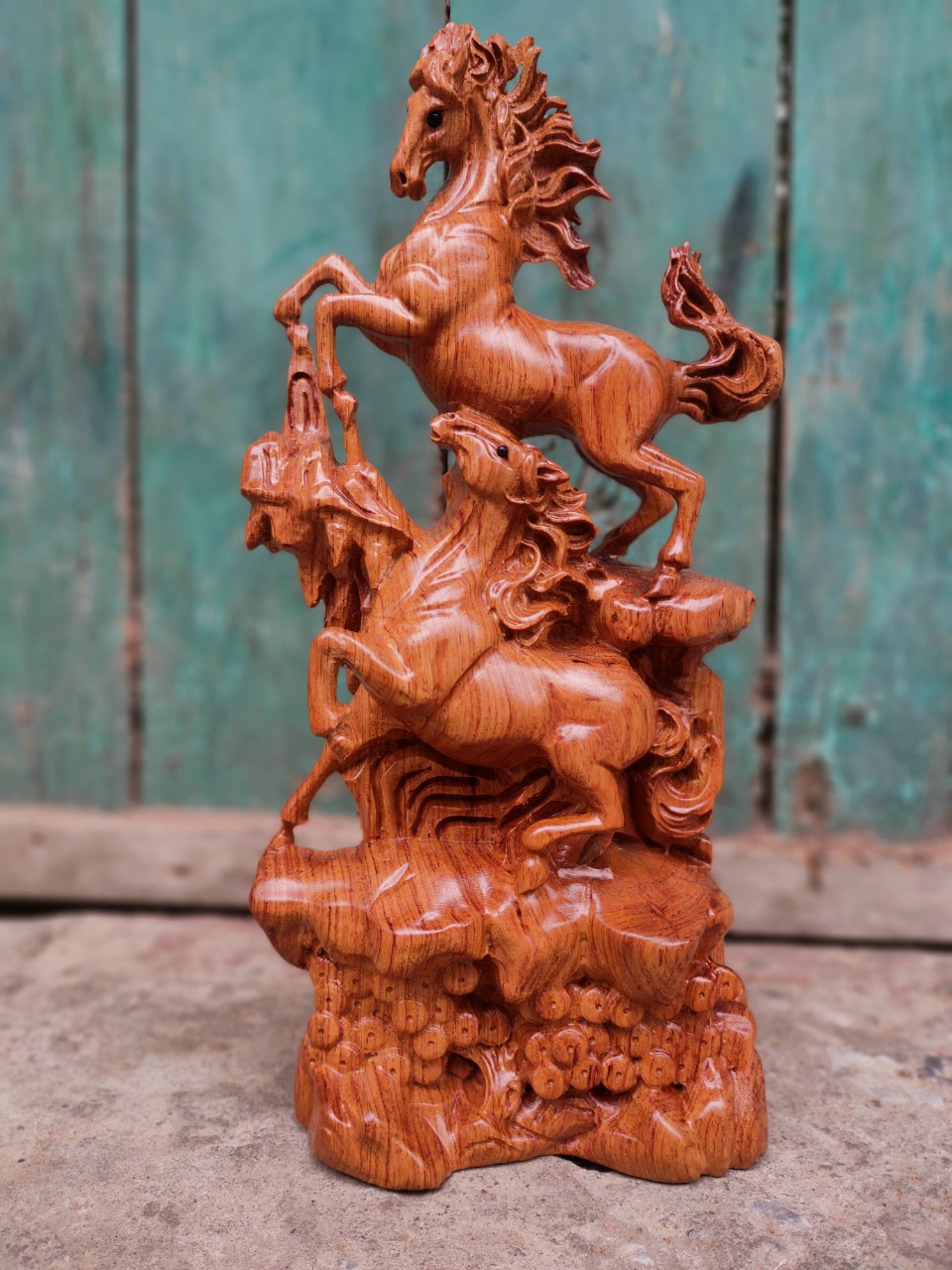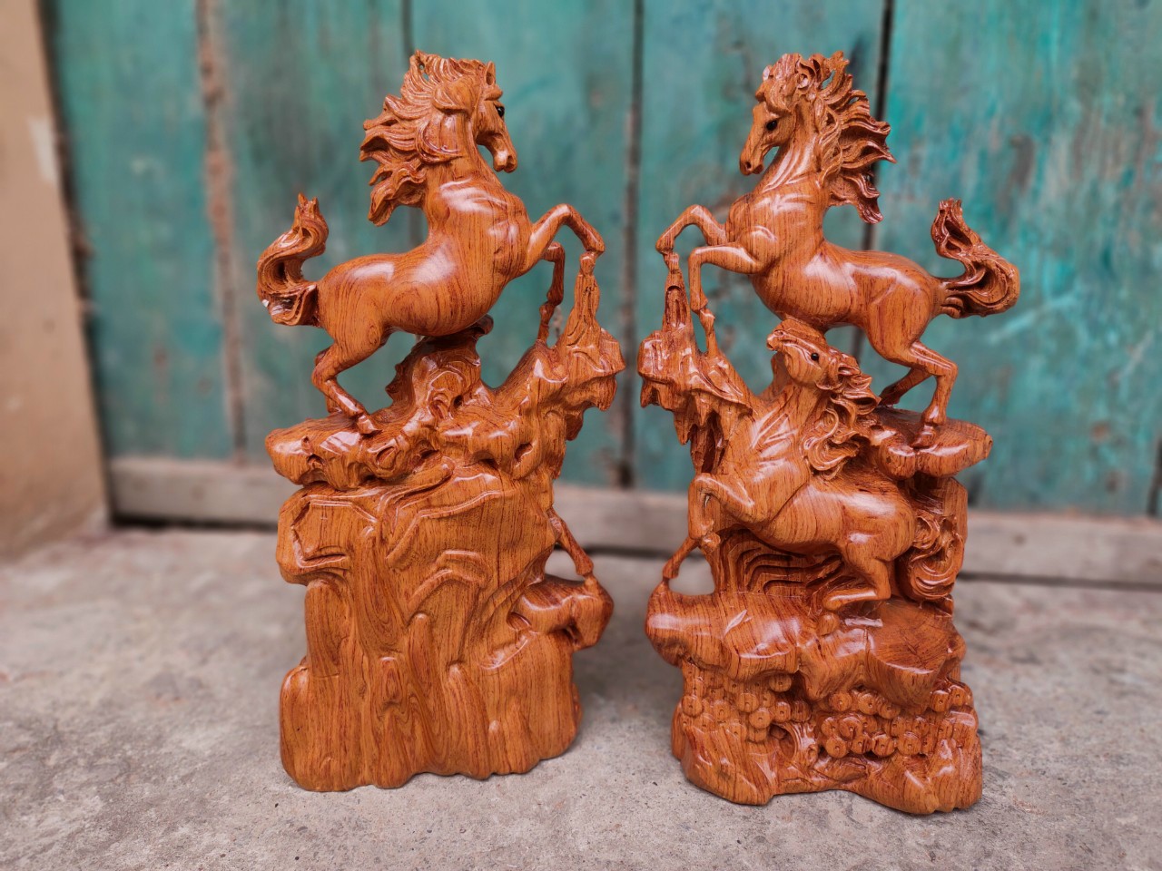 tượng ngựa gỗ , song mã uyên ương tượng gỗ nguyễn hồng