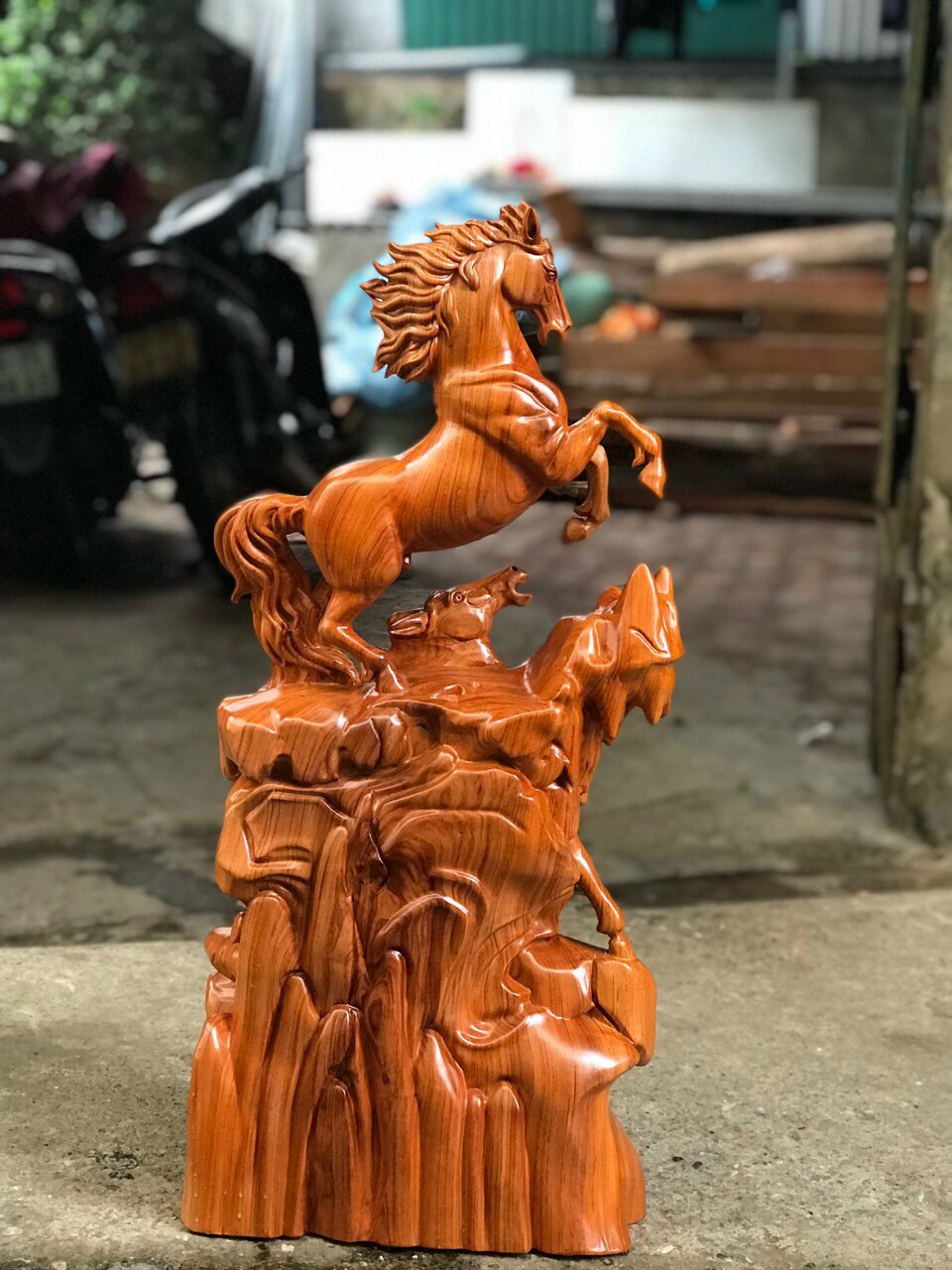 _ Tượng con ngựa được làm bằng chất liệu gỗ hương đá tự nhiên 100% _ Kích thước cao 50ngang 23 sâu12cm _ Tượng con ngựa được làm và hoàn thiện do bàn tay khối