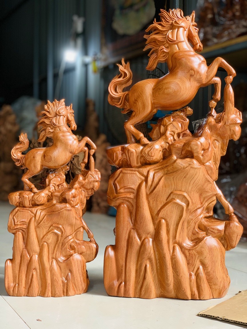 Tượng ngựa nhất mã đục máy cnc gỗ hương đá nam phi nguyên khối