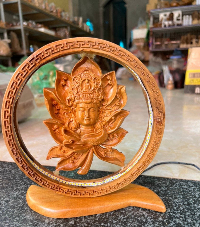 ✨Tượng Diện phật có lắp bóng đèn bằng gỗ bách xanh thơm nức kt 20×20×6cm