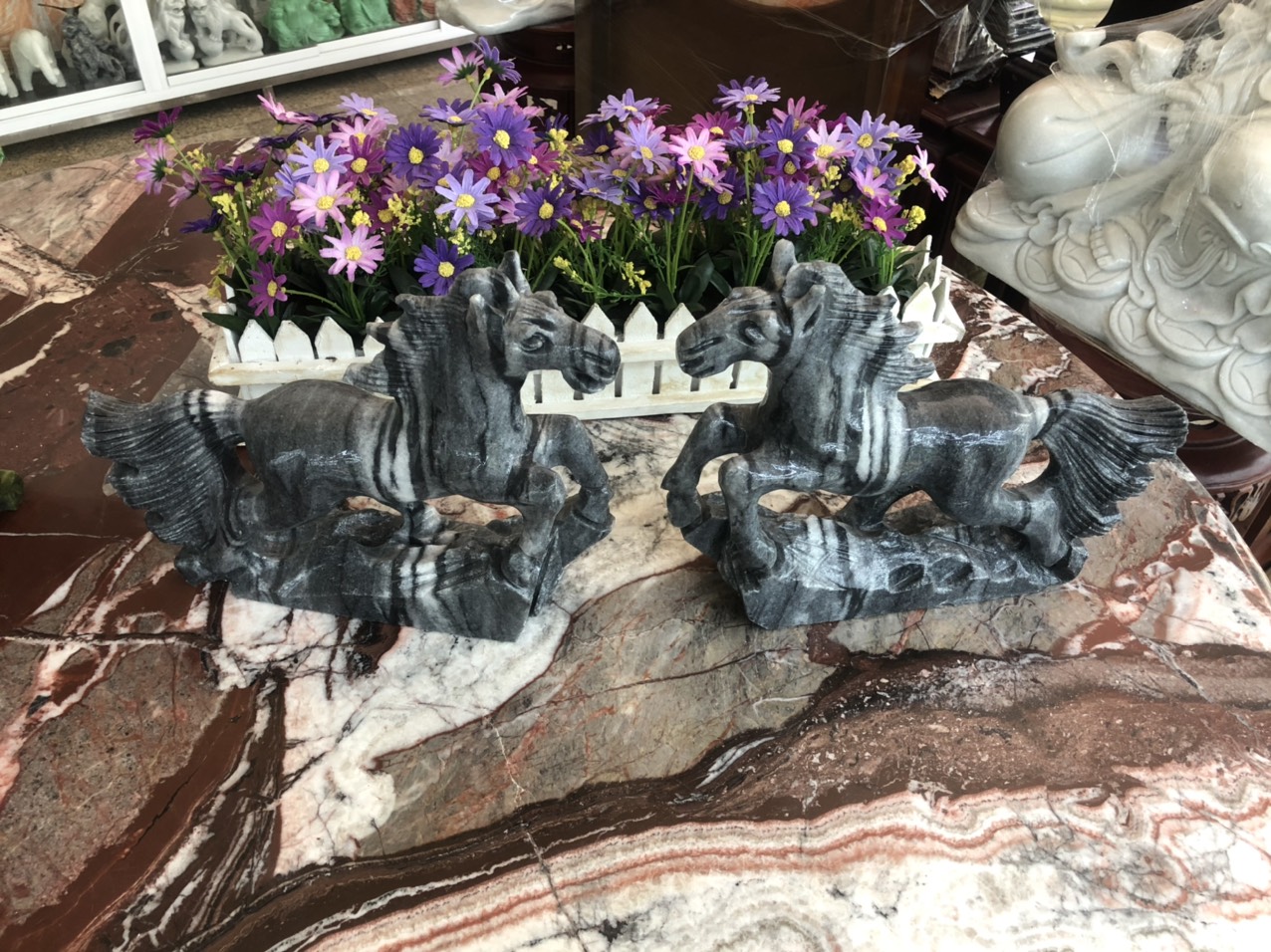 ✨Tượng Ngựa phong thủy rước công danh tài lộc đá cẩm thạch vân đen để bàn - Dài 25 cm