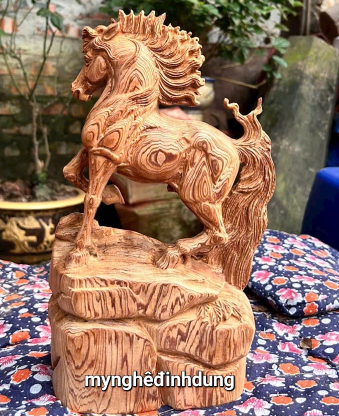 Mua tại Tiktok_ Tượng nhất mã thong dong được làm bằng chất liệu gỗ ngọc am liền khối tự nhiên 100%