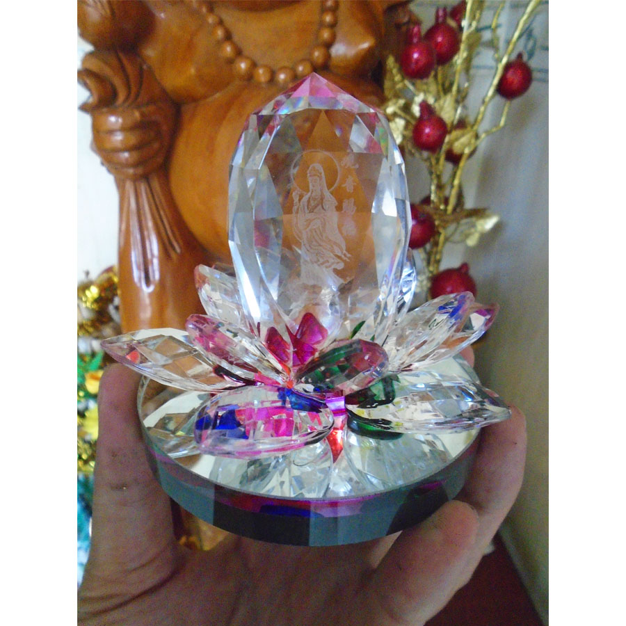 Tượng Phật Bà Quan Âm Mới Đá Lưu Ly Hồng Để Trong Xe Hơi hoặc trên bàn cao 12cm đk 7cm đế 5cm hợp Anh Chị Mệnh Hỏa mệnh Thổ ạ *** Tượng Phật Bà