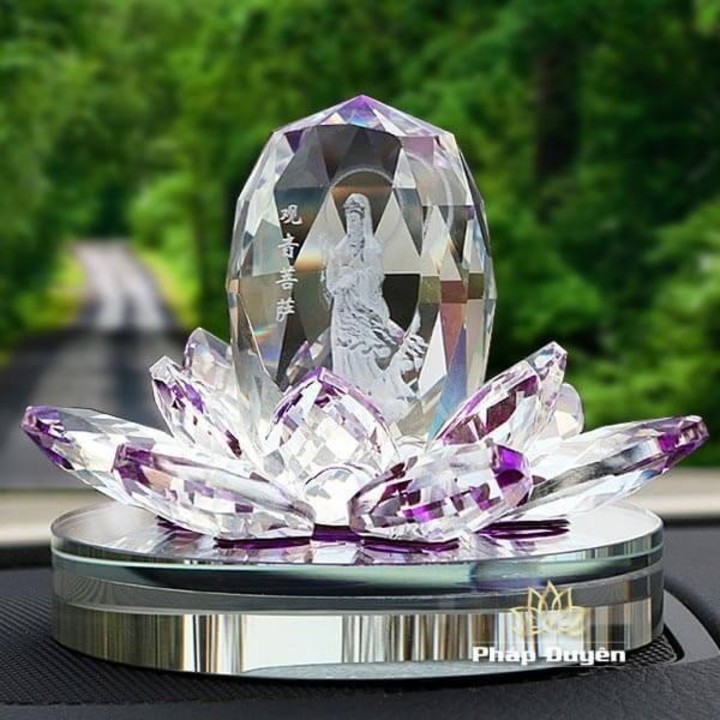 ✨Tượng Phật Bà Quan Âm Tòa Sen Pha Lê Trong, Tượng Nước Hoa Quan Âm, Tặng Kèm Tinh Dầu Và Đế Chống Trượt