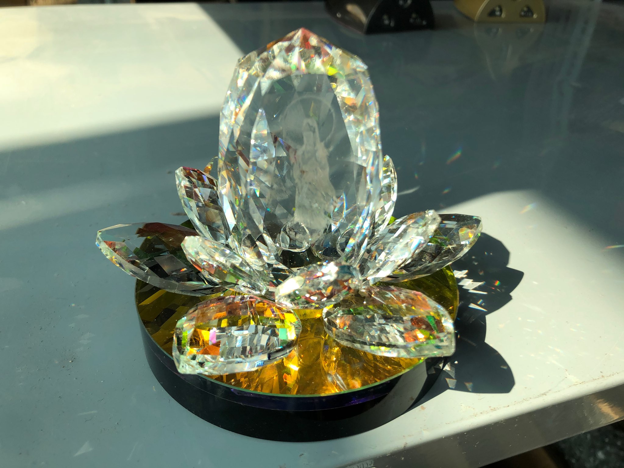 Đài sen pha lê tượng phật, đế đài sen quan âm bồ tát, đế trượng, trang trí tủ thờ