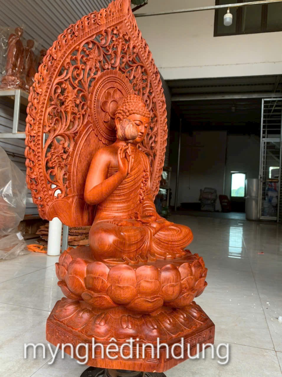 ✨Tượng phật liên hoa bằng gỗ hương đá kt cao 60×36×36cm +lá chắn hào quang cao tổng 81cm