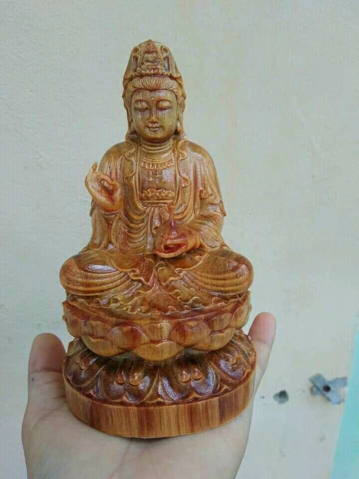 ✨Tượng phật quan thế âm bồ tát gỗ huyết long ngồi đài sen kt cao 15×9×9cm
