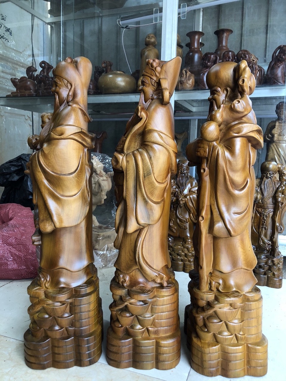Tượng gỗ Tam đa Phúc Lộc Thọ gỗ bách xanh mộc châu - Cao 40 #2950k cao 30 #1tr7 - Rẻ nhất thị trường