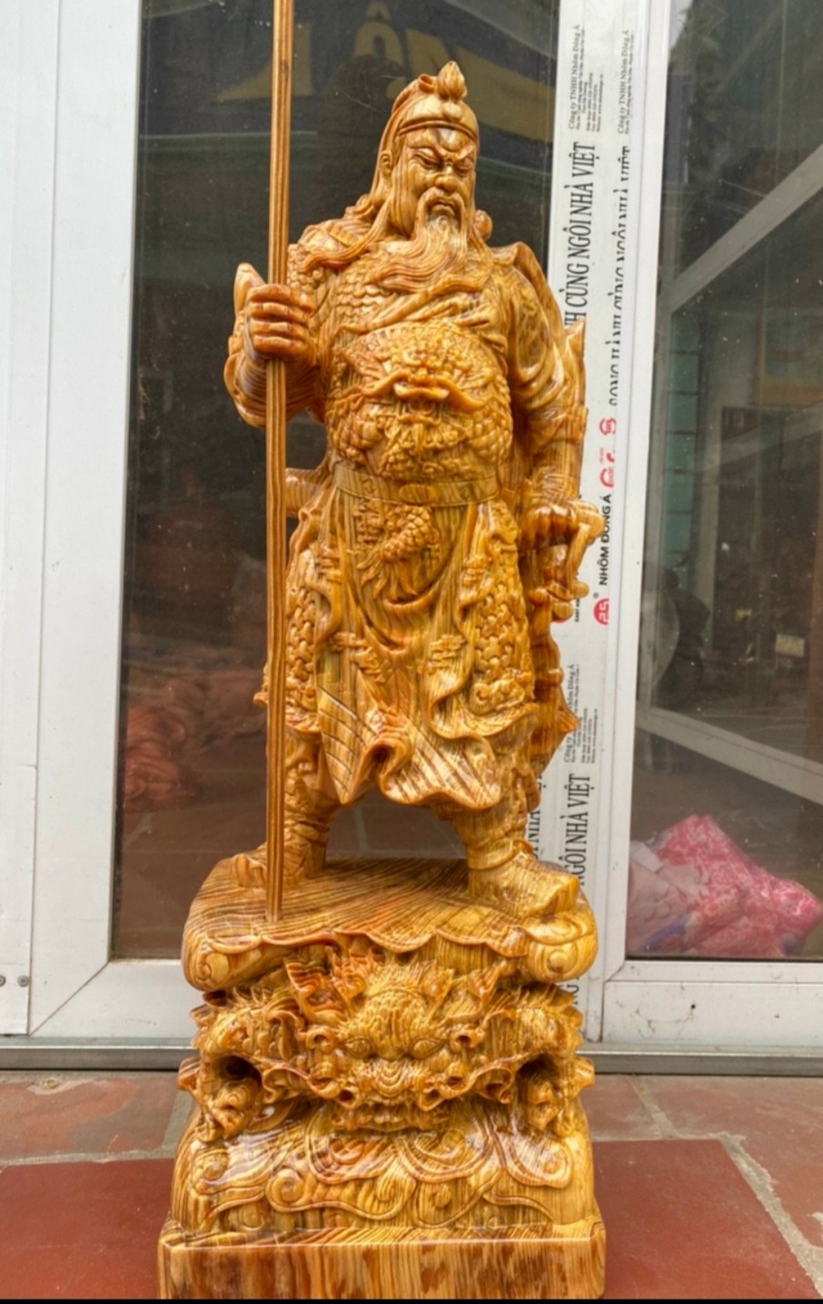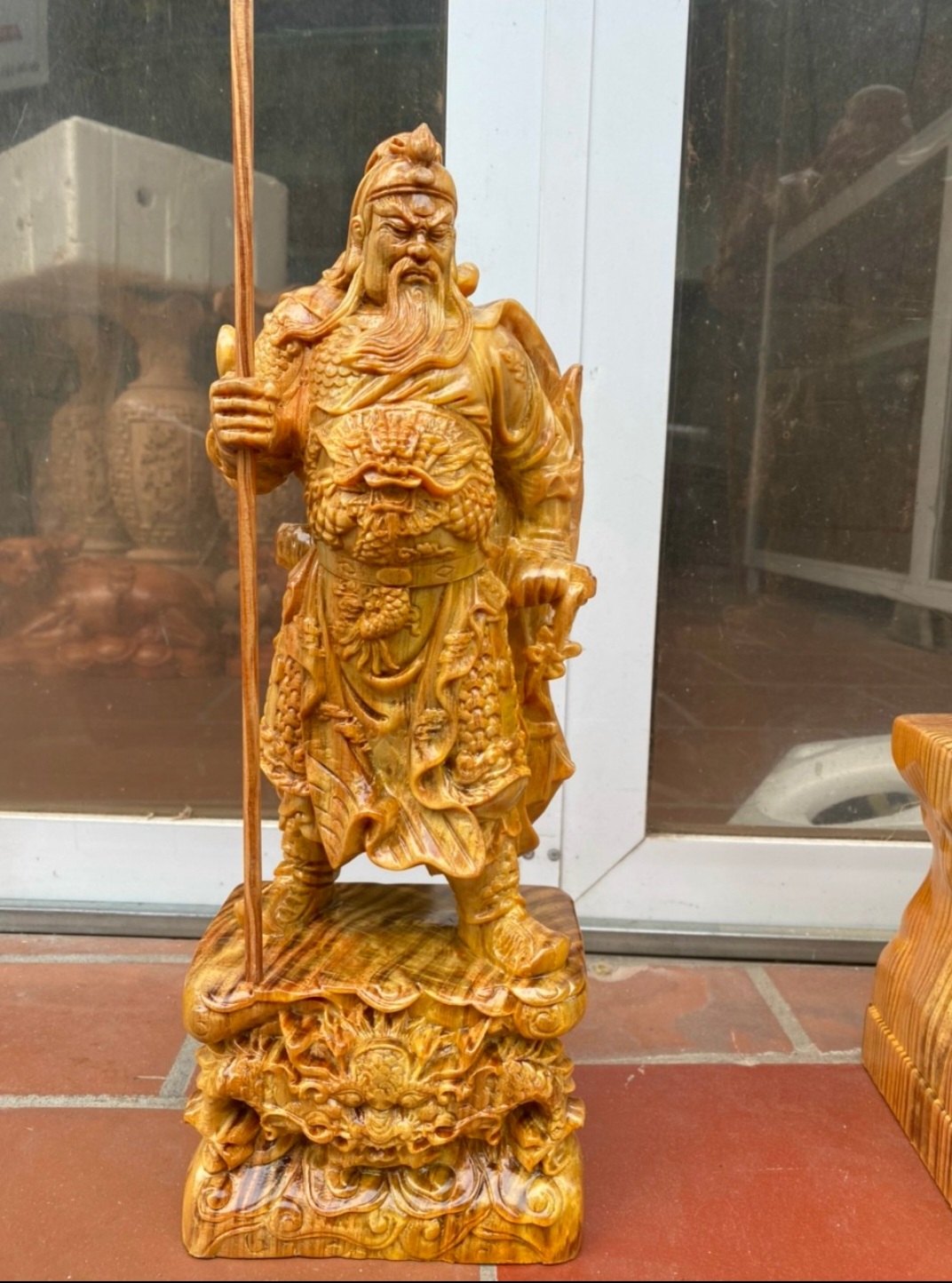 ✨Tượng quan công cầm đao trấn ải bằng gỗ huyết long mọng dầu kt cao 50×20×13cm